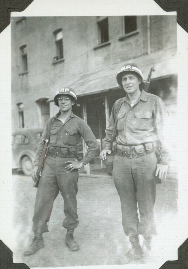 Soldiers Manizza and Taylor in Jena, Germany. (May 1945). Source: Veterans History Project, Bernard Horowitz.