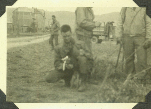 A soldier and his dog, Cookie in Jena, Germany. (May 1945). Source: Veterans History Project, Bernard Horowitz.