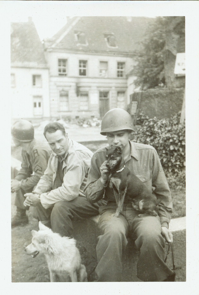 Soldiers with their dogs. (1945). Source: Veterans History Project, Bernard Horowitz.