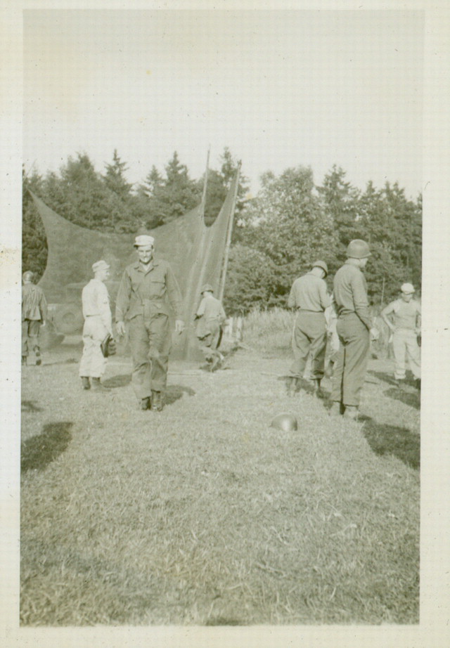 Soldiers get ready to play a softball game in Paffrath, Germany. (June 1945). Source: Veterans History Project, Bernard Horowitz.