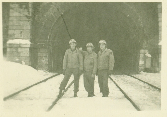 Soldiers in the snow in Pepinster, Belgium. (January 1945). Source: Veterans History Project, Bernard Horowitz.
