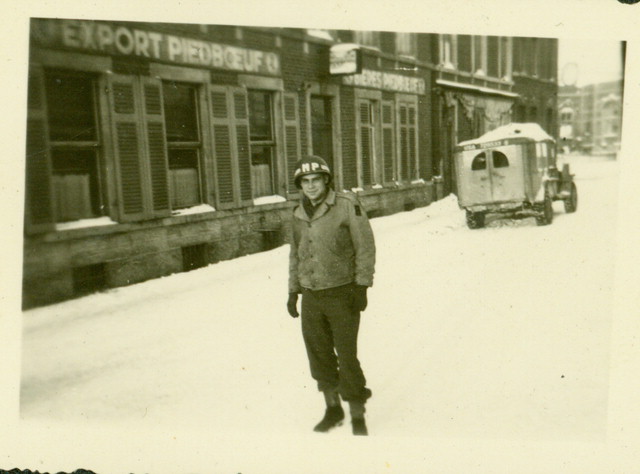 Soldier Bernard Horowitz in snowy Belgium. (January 1954). Source: Veterans History Project, Bernard Horowitz.